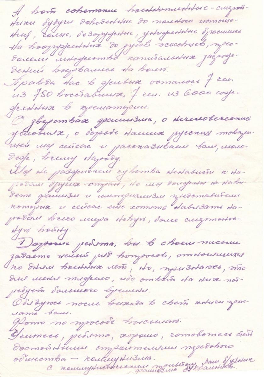 С коммунистическим приветом вам б/узник фашизма В. Украинцев.